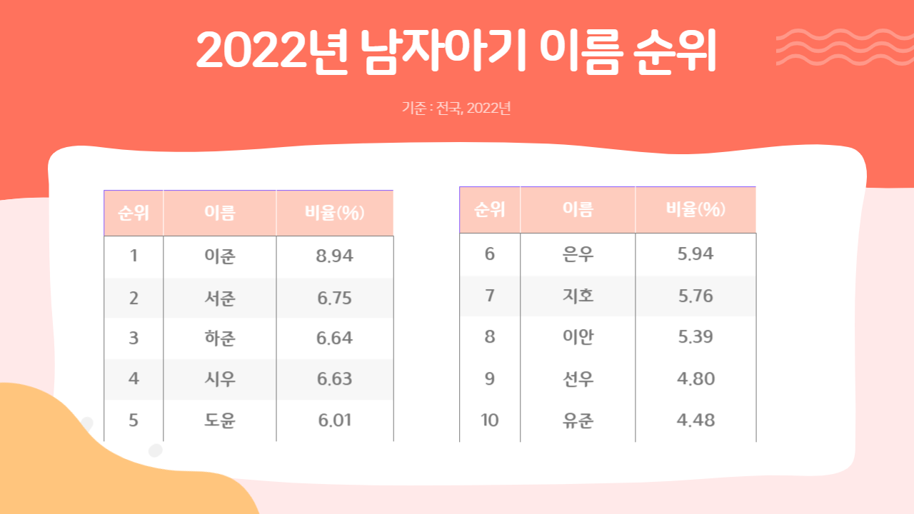 혹자는 아이에게 평범한 이름을 지어주고 싶어서 이 순위를 찾아보실 수도 있을 것 같고